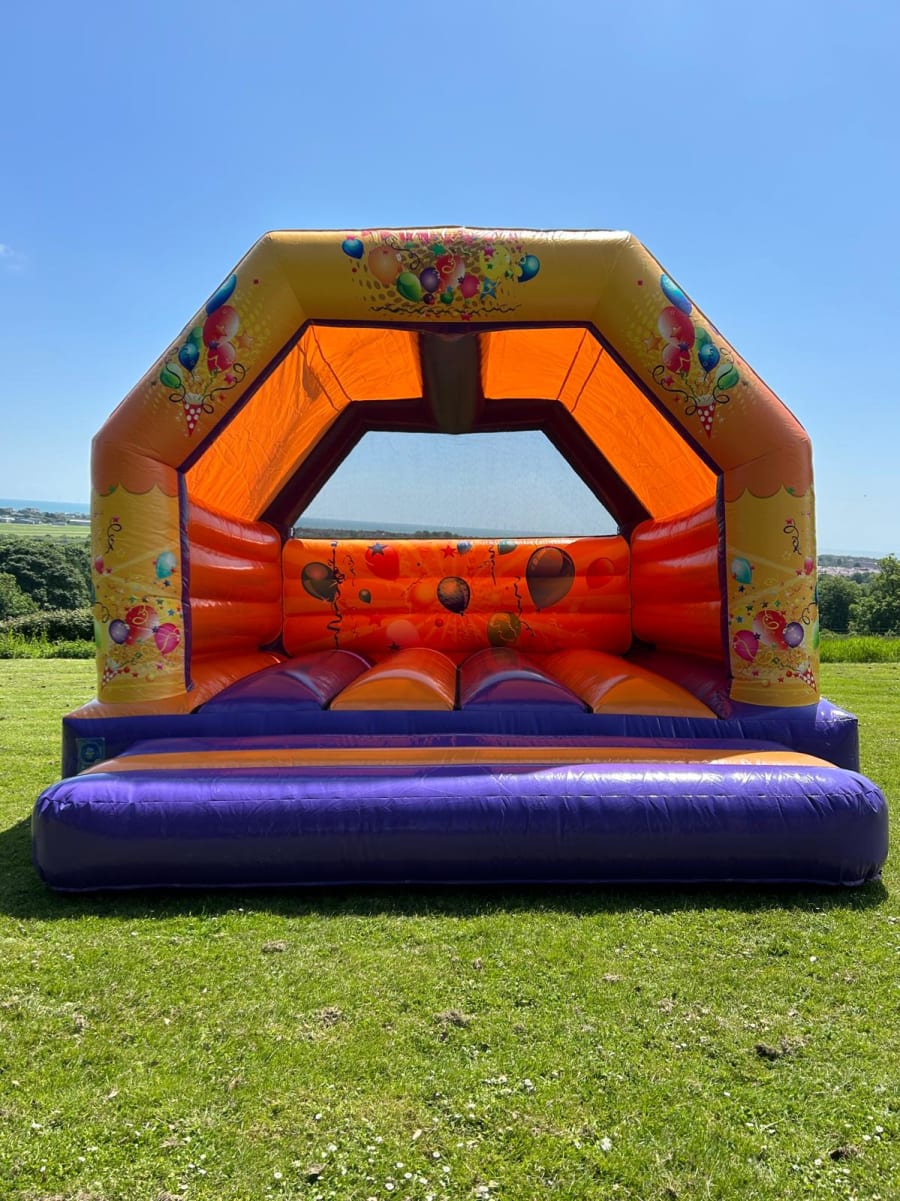 With its vibrant purple and orange color scheme, this party castle is sure to grab everyone's attention. Whether you're hosting a birthday celebration a corporate event or a community party, this inflatable is sure to be a hit! Designed for both kids and adults, this bouncy castle is guaranteed to bring hours of fun and excitement to any gathering.