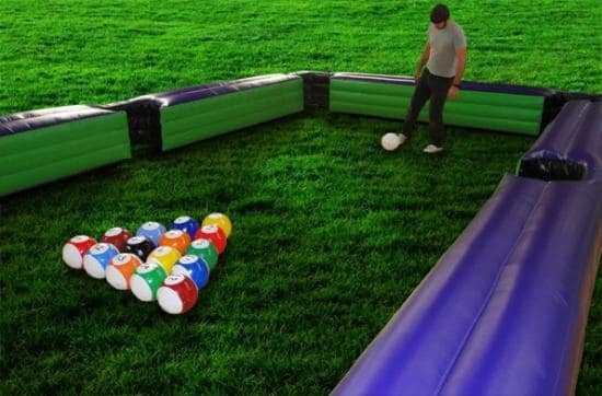 Pool as you know it with all the usual rules, only this time YOU are the cue! Kick the white ball to "break" and follow the usual rules. All played within a giant inflatable pool 'table'.
