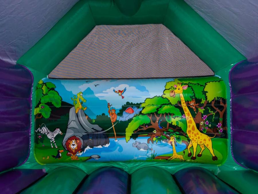 Jungle Jumper Bouncy Castle - Have fun bouncing with a variety of jungle animals, from Monkeys to Elephants & Snakes!