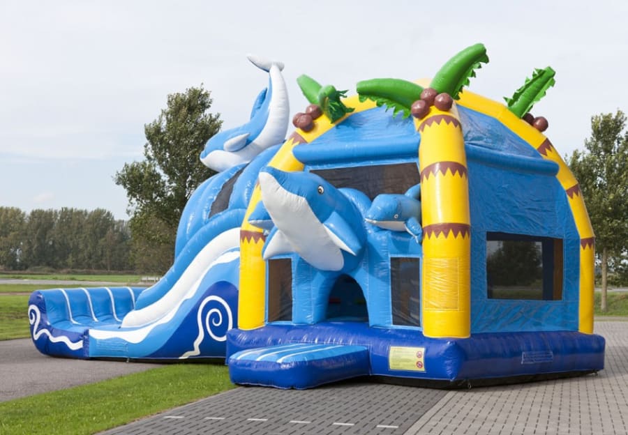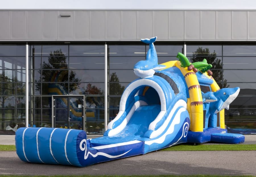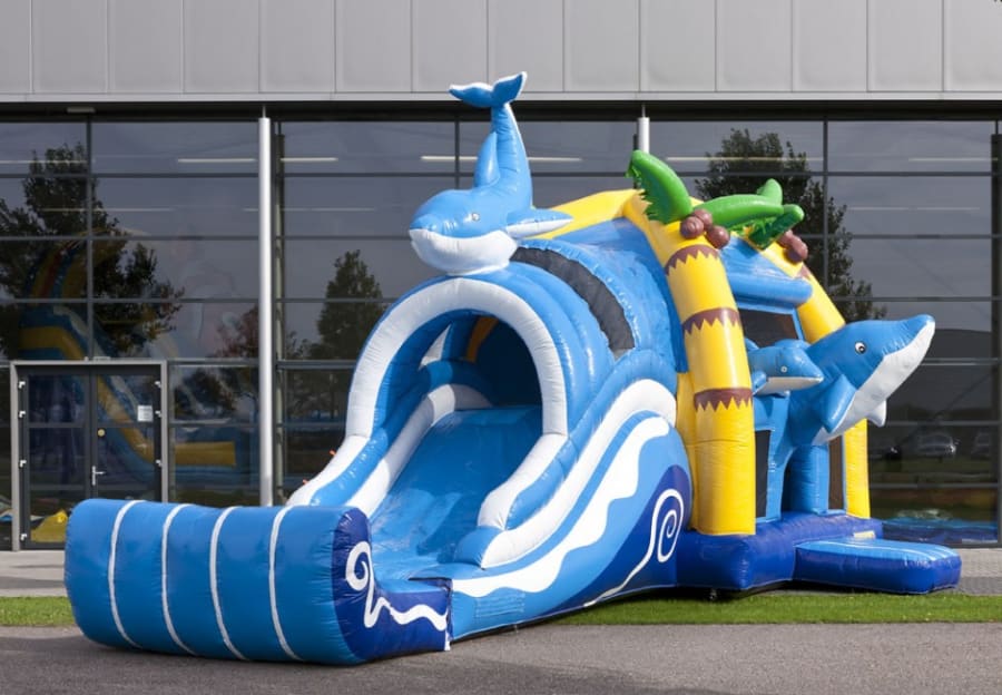 With a similar layout to that of our super popular Crocodile Multiplay Bouncer with Slide, Dolphin is sure to be a hit amongst all of your guests! Its bold and bright colours, coupled with a large indoor surface area (fitted with 3D objects) and slide make for an awesome bouncy castle! Space needed for assembly - Length 46ft x Width 24ft x Height 16.4ft