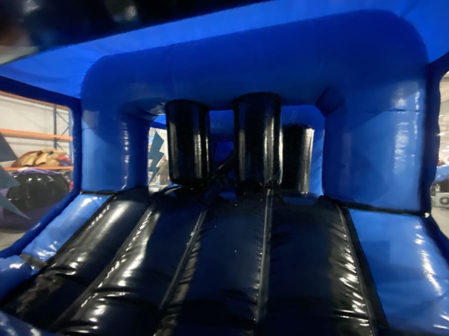 Bring the party to your backyard with our 46ft Lightning Disco Obstacle Course! This inflatable obstacle course features a striking lightning theme (pun intended) and includes a slide for an extra thrill! Equipped with a disco light and speaker, it's the ultimate party entertainment for kids, teens, and even adults!